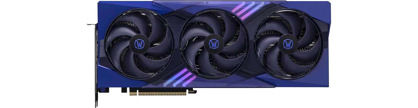 Both World of Warcraft editions use MSI's Tri Frozr 4 cooling system, the latest generation of their triple-fan thermal solution. The design brings upgraded fan blades with improved airflow control alongside refined heat pipe routing and an enlarged vapor chamber baseplate. The combined result is lower thermal headroom consumption under sustained load and quieter operation compared to previous Tri Frozr generations — relevant for the RTX 5070's power envelope at its factory overclocked speeds. The 2.5-slot thickness allows MSI to maintain heatsink density without pushing into triple-slot territory.